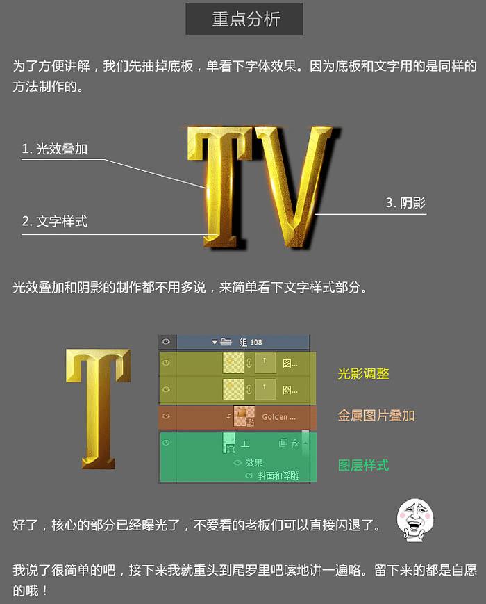 重点分析:为了方便讲解,我们先隐藏底板,单看下字体效果。因为底板和文字用的是同样的方法制作的。