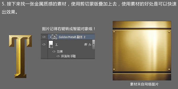 5、接下来找一张金属质感的素材,使用剪切蒙版叠加上去,使用素材的好处是可以快速出效果。