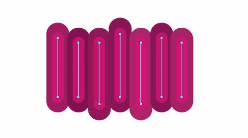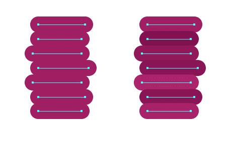 接下来创建环绕的螺线笔刷。使用直线工具创建一条短水平线。使用选择工具摁住alt键复制直线,然后Ctrl+D重复刚才的动作,直到你有一堆短直线。在描边面板中设置2pt的描边,两头设置圆端。