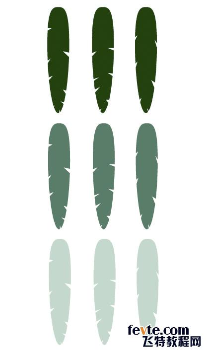 将每一组的羽毛组合(Ctrl+G),复制。打开路径联合,为每个组创建一个整体形状。