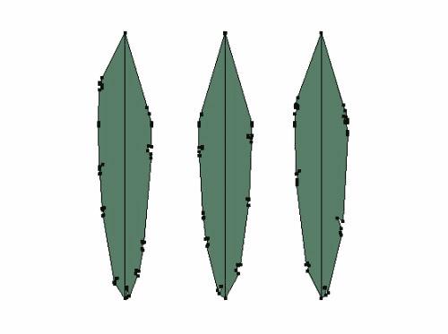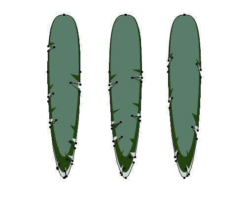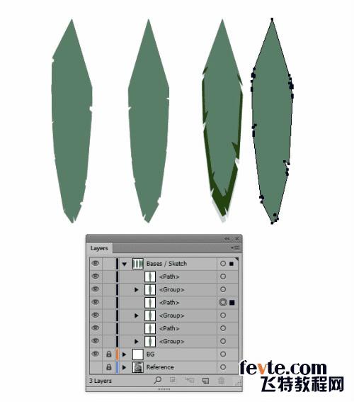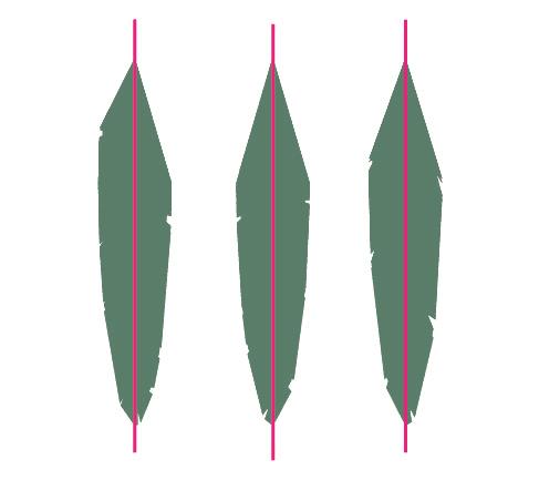 重复以上步骤给剩下的两个椭圆副本添加羽毛边界,羽毛上的中轴线可以作为羽毛上三角形指向的位置的参考。隐藏中轴线。