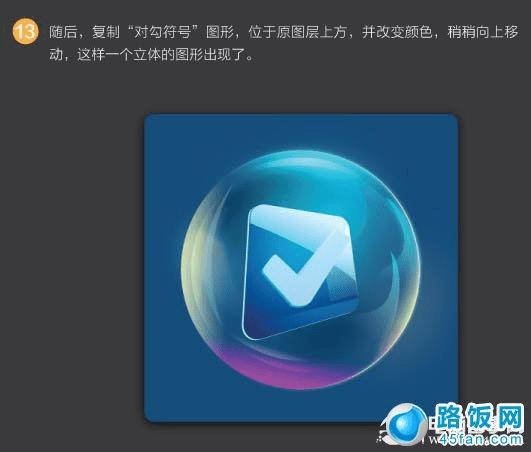 13、随后复制对勾符号图形,位于原图层上方,并改变颜色,稍稍向上移动,这样一个立体图形出现了。
