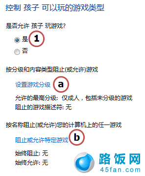如果不允许孩子玩任何游戏,就直接单击否就可以了。