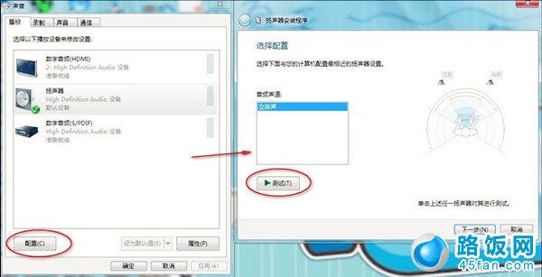 第五步、我们回到“声音”界面,点击“配置”,进行测试效果。