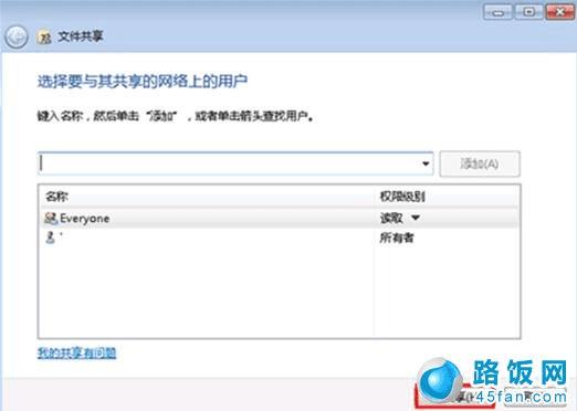 一、所需调整文件夹图标上单击鼠标右键,移动至“共享”,点击“特定用户共享”,出现文件共享设置窗口,在下拉菜单中选择“Everyone”---选择“添加”;