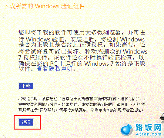 5. 软件安装完成后,点击步骤3图中的“继续”按钮,开始验证过程;