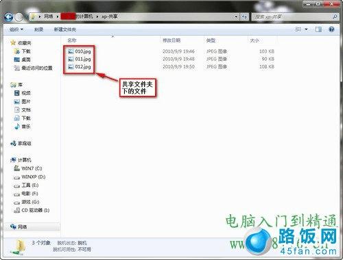 刚才共享文件的XP端计算机可以看到啦,赶快打开吧!