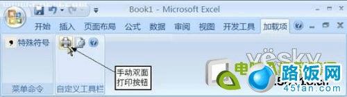 安装ExcelPrinter后,再打开Excel2007切换到“加载项”选项,你会发现比原来多出了“手动双面打印”和“打印当前页”这两项工具按钮(图2)。单击“手动双面打印” ,效果就和Word中的双面打印一样,会在打印完单页内容后弹对话框提醒你换一面,确定后再打印出双页内容。