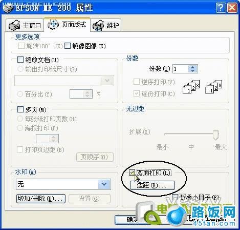 小提示:请一定安装打印机随机提供的驱动光盘,使用Windows提供的默认驱动是不可能有这些特殊打印功能的。在不需要双面打印时还得从在里更改才行。