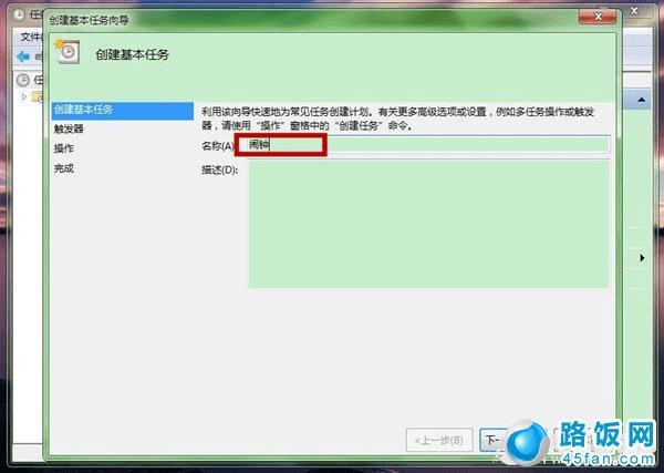 第五步、这时候,会出现一个“创建基本任务向导”对话框,我们输入名称后,默认点击“下一步”。