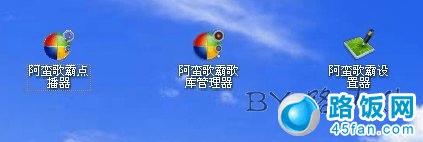 安装完成后,桌面上会生成三个图标,分别是阿蛮歌霸点播器、阿蛮歌霸歌库管理器和阿蛮歌霸设置器,其中点播器是启动ktv的入口,歌库管理器用来管理ktv里面的歌手,歌霸设置其不常用到。