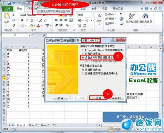 Excel2007版操作过程与Excel2010版几乎一样;Excel2003版则不需要调出“数据透视表和数据透视图向导”,直接“插入”》“数据透视表和数据透视图向导”即可。