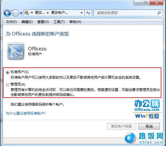 注意:如果被降级的账户是此计算机唯一一个管理员账户,则不能降低该账户权限。