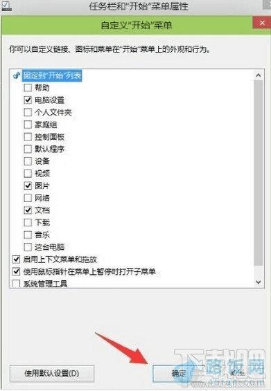 3:找到相应的程序固定到开始列表中去。选择好以后点击"确定",如果觉得添的没有什么用则可以点击"使用默认设置"