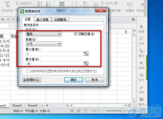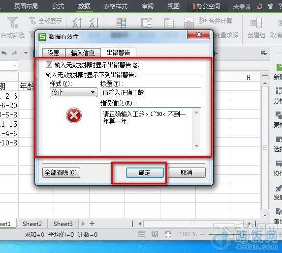 8:单输入的数字不在这有效性内就会显示提示出来。