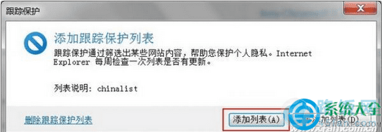 接下来,只要单击下面的 ChinaList and EasyList TPL 链接:ChinaList and EasyList TPL,在弹出的对话框中选择“添加列表”,这样就可以达到广告拦截的功能了(图2)。该跟踪保护列表的拦截规则是从adblock的chinalist转换而来,另外加上easylist的部分规则,并会持续更新。