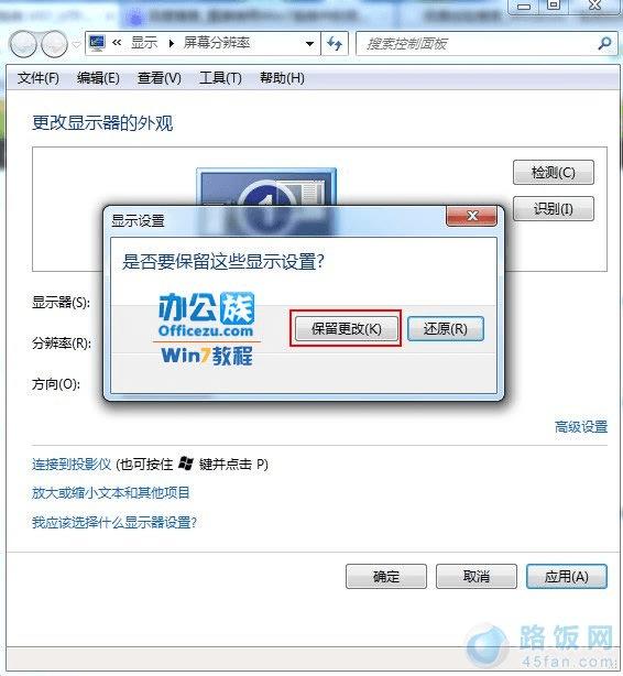 选择“确定”后,会出现显示设置的菜单,选择“保留更改”。