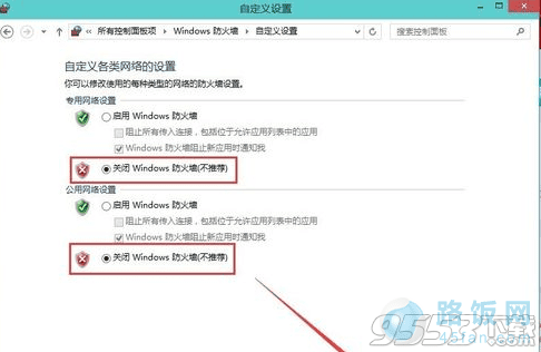 3、将所有网络或者某个网络设置为“关闭Windows防火墙(不推荐)”就关闭防火墙了。
