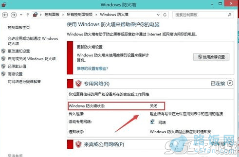 4、再到Windows 防火墙看看在状态这里看到的就是关闭的状态。