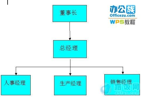 3、 在连接的时候要注意等文本框的小圆点出现后直接连接,这样文本框移动的时候,连接符也可以随之移动。如下图,结构组织图制作完成。