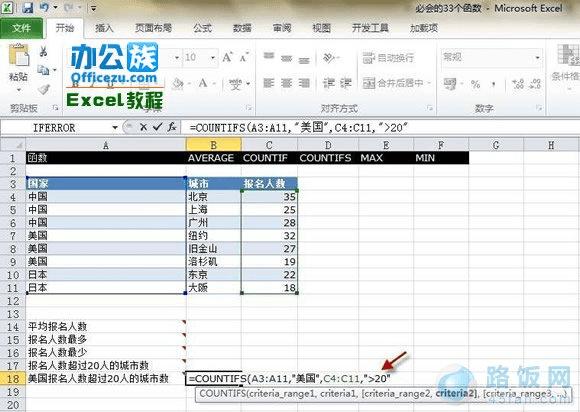 需要计算美国报名人数超过20人的城市数量,就需要这个函数。
