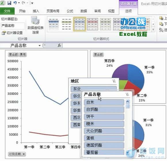Excel2010表格通过切片器实现多数据透视图表的同步