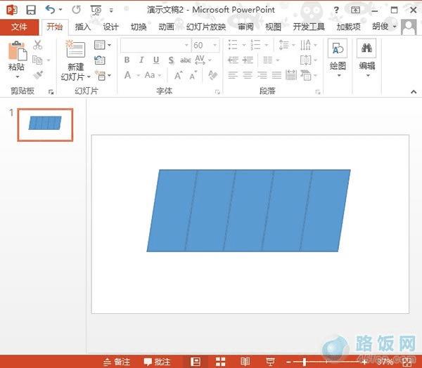 1、 启动PowerPoint2013,单击菜单栏--插入--形状,选择形状,例如我选的就是平行四边形。