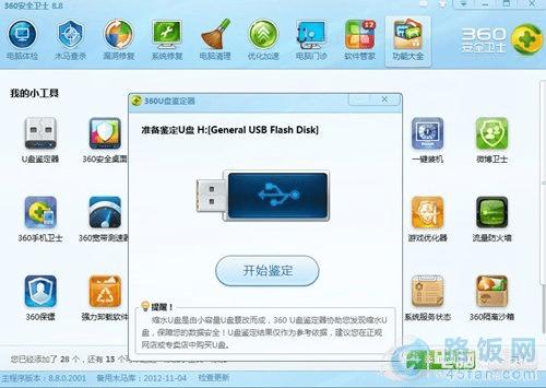 360U盘鉴定器, 插入U盘可以点开始鉴定,如下图所示: