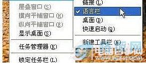 方法一:右击任务栏空白处-工具栏-语言栏即可如图: