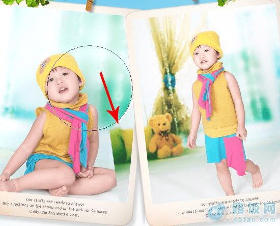 7、此时发现照片挡住了另一张照片,用橡皮擦工具擦掉不需要的部分