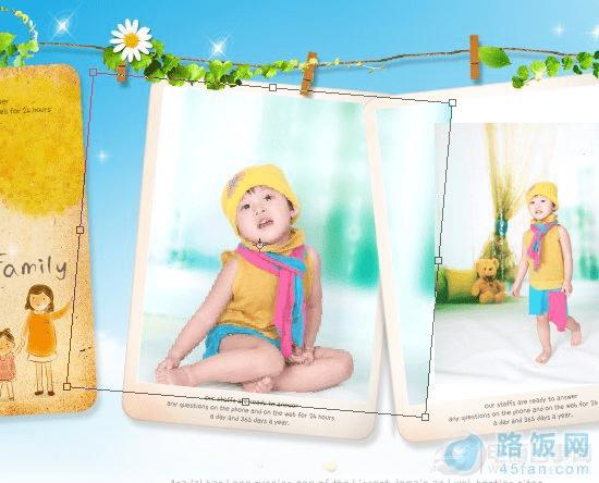 6、执行CTRL+T自由变换,将两张照片调整到合适大小和位置