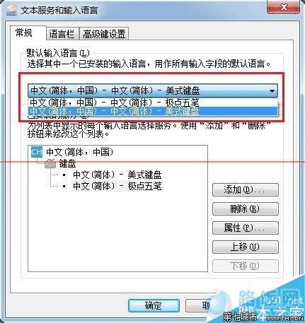 5、上面的下拉框可以选择系统默认的输入法是哪个,可按个人习惯来设。