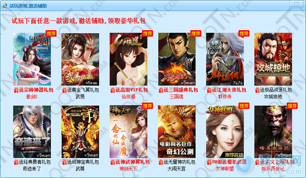 弹出的窗口有12款游戏任您选择,只要注册并试玩其中一款就能成功激活并使用辅助了。这时大家肯定会说“我只是来用辅助,并且这些平台我都有账号了,激活辅助就不能用我老账号吗?”大家这些疑问,小编都理解。试玩新游只是为了用户们能尝试玩其他不同的游戏,并非用我们的辅助就必须用新账号来玩。往下我会告诉大家在辅助成功激活后,如何登陆自己的老账号。
