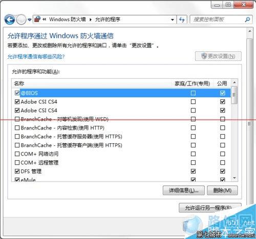 4、在弹出的【允许的程序】对话框中设置允许你通过防火墙的程序