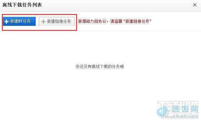 2、在弹出的窗口中选择“新建链接任务”,如果是BT种子文件离线下载需要点击“新建BT任务”。