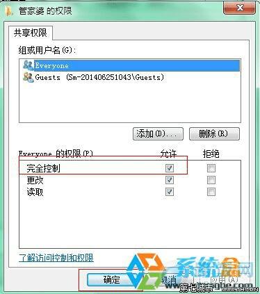 5、选中组或用户名中的用户,然后将下方的权限都设置为“完全控制”,最后确定。
