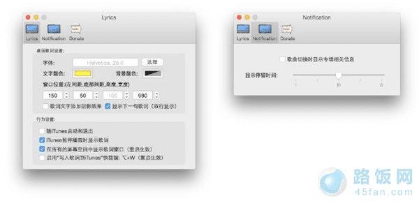 偏好设置:除上述设置项外的所有其他设置内容。需要实时显示歌词并与 iTunes 捆绑的用户,请勾选「行为设置」里的「随 iTunes 启动和退出」及「在所有的屏幕空间中显示歌词窗口」两项。