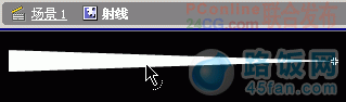4.按快捷键Ctrl+F8新建一个名为“射线”的影片剪辑元件。用“矩形”工具绘制一个宽为300px,高为20px的矩形条(不要边线),再用“直线”工具把矩形条截取成如图6所示的样子。