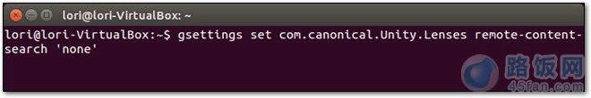 gsettings set com.canonical.Unity.Lenses remote-content-search ‘none’