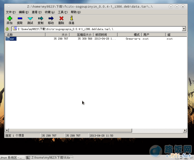 解压这个deb包,用7z比较方便,我用了wine的7z,不习惯命令行界面,就wine了个7zip,够懒得吧?
