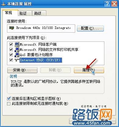 图三在“本地连接”属性中找到并选中“Internet 协议(TCP/IP)”,然后单击”属性“按钮