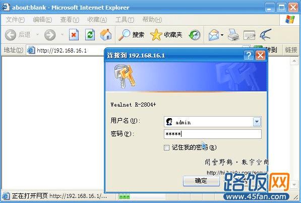 3、开始对路由器设置,打开IE浏览器,在IE中输入192.168.1.1(本文中以192.168.16.1为例),然后弹出用户名和密码框,初始值为admin