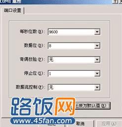 在“COM属性”中点击“还原默认值”然后点击“确定”,这时会打开“超级终端”配置窗口,窗口左上角可看到光标在闪烁。设备出厂时波特率是9600,如果9600进不去设备,建议在“还原默认值”后把波特率修改为57600 或115200尝试。