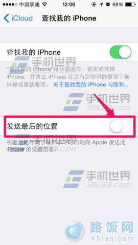 3)在【iCioud】界面中点击【查找我的iPhone】,开启【发送最后的位置】。
