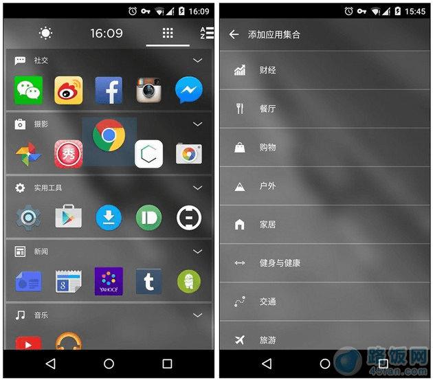 长按应用列表中的应用图标可以将其拖拽至不同类别的应用集合文件夹,而长按应用集合可以调出添加集合选项,也可以进行顺序调整和删除。