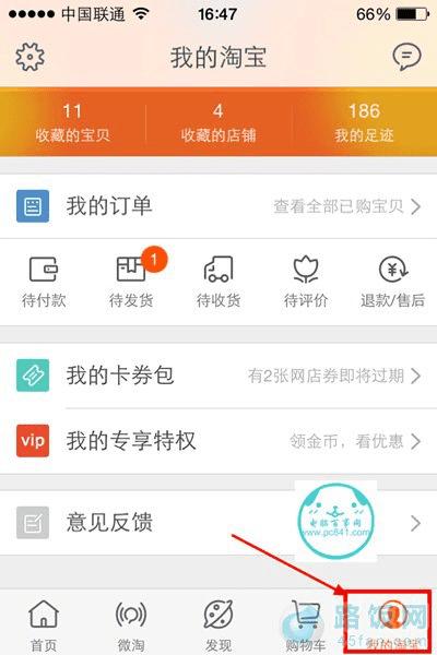 2,在其手机淘宝页面,找到“我的淘宝”,点击进入“我的淘宝”页面,如下图所示