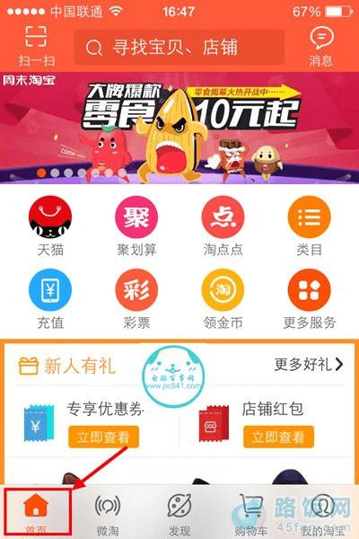 1,打开手机淘宝客户端,进入到手机淘宝首页页面,如下图所示: