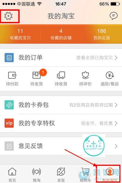 3,然后,在我的淘宝页面,在其右上角找到一个齿轮设置图标,如下图所示