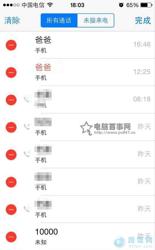 4.最后这一步不要忘记了,在通话记录里面删除最近联系人。如下图所示: