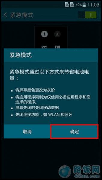 5.向右滑动【紧急模式】选项右侧的长方形滑块,点击【确定】即可。
